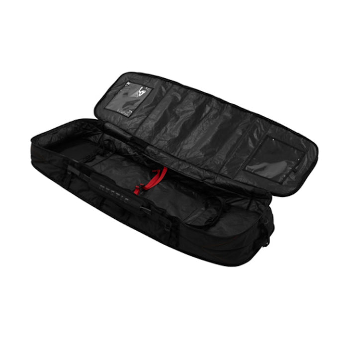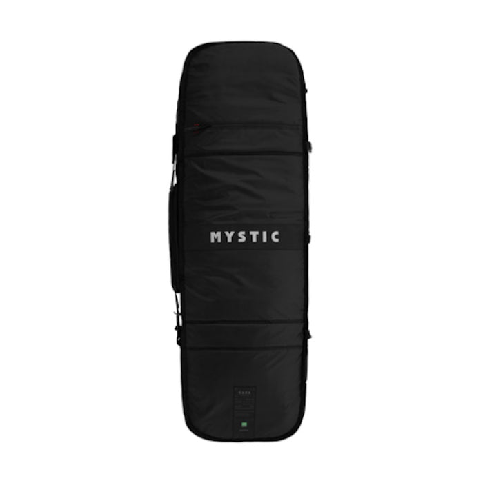 Meet the Saga – this heavy-duty board bag offers superior protection and padding, ensuring your gear stays in top condition during travel. Made from water-repellent fabric, it features a custom Mystic wheel case for smooth, effortless transport. The bag includes a compact elastic shoulder strap, multiple air vent ventilations, and convenient outside pockets for smaller items. Compression straps and a Link System make it easy to attach to other bags, while the compact design allows it to be rolled up for easy storage. The biggest size fits 1 board, 3 kites, and all the essential gear for your trip.